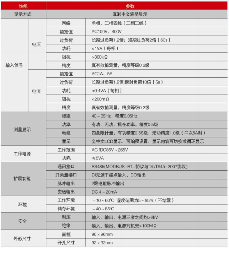 | 輸入信號 | 電壓 | 網絡 | 單相、三相四線(三相三線) |